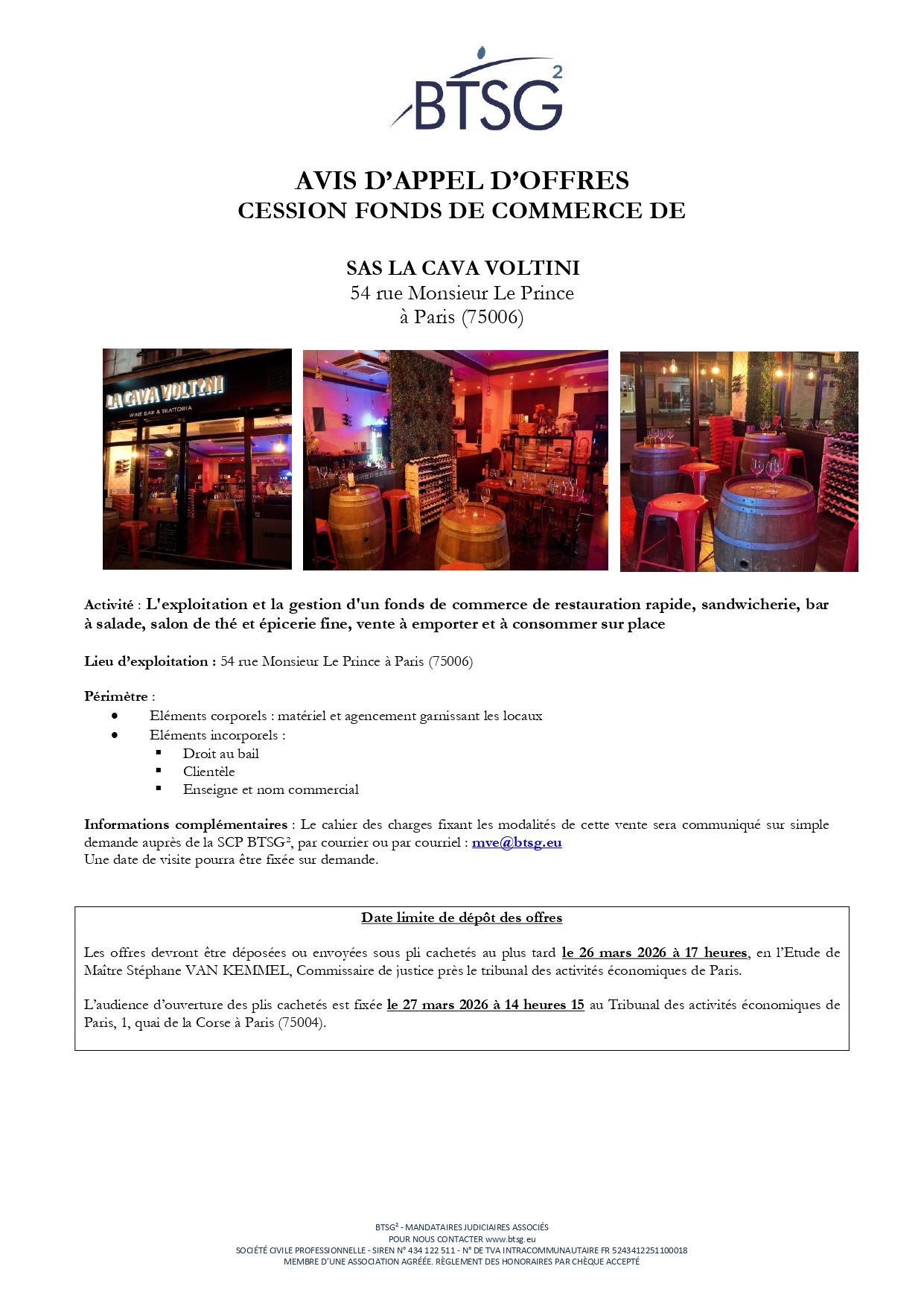 Durée : Le contrat de bail commercial cédé à la SAS LA CAVA VOLTINI a été consenti pour une durée de 9 années, à compter du 1er janvier 2022 pour se terminer le 31 décembre 2030.